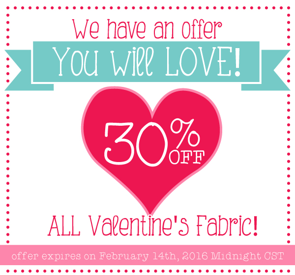 Last but not least, all of our Valentine's fabrics are on SALE this week only!